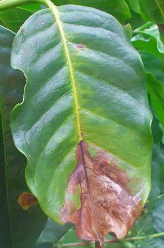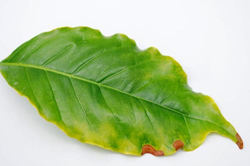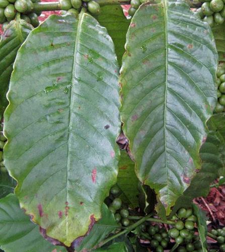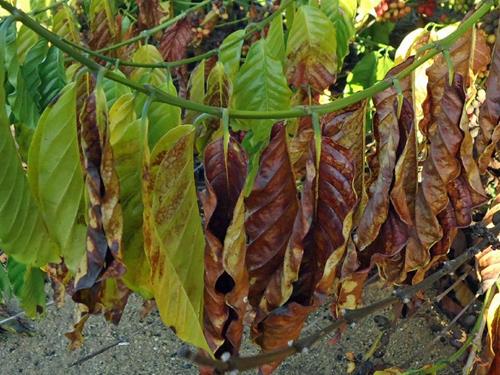 Deficiencia severa de potasio (C. arabica).