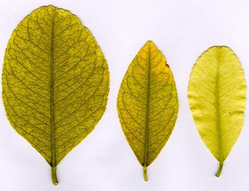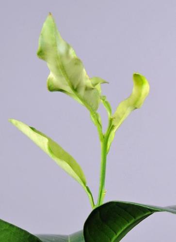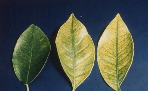 Deficiencia de hierro en hojas de los cítricos