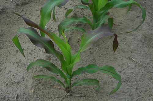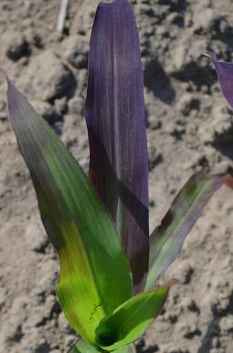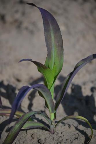 Algunos híbridos de maíz presentan hojas rojizas en etapas tempranas del desarrollo aunque el fósforo suministrado sea suficiente.